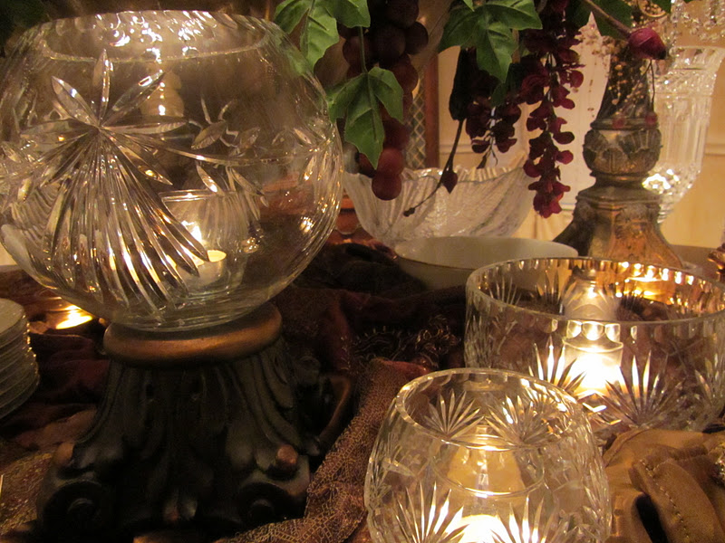 Also, pull out that crystal you've been saving. Many of us received crystal as wedding gifts; and we never use it. A holiday party is a great opportunity to show it off! It doesn't have to match. It's ok to mix items of the same medium. It's all about the sparkle!!